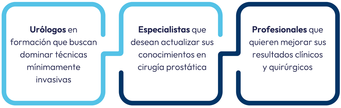 Dirigido a urólogos en formación y especialistas interesados en perfeccionar su dominio de las técnicas de enucleación con láser, bajo la supervisión de cirujanos con amplia experiencia clínica y docente.